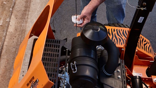 “Use a premium oil that is recommenced for the engine,” Miller says. “As an example, Vanguard oil is a full-synthetic oil that will maintain the engine life in the toughest of commercial environments. We do not recommend using automotive oil, since automotive oil is not specially-formulated for small engines.”