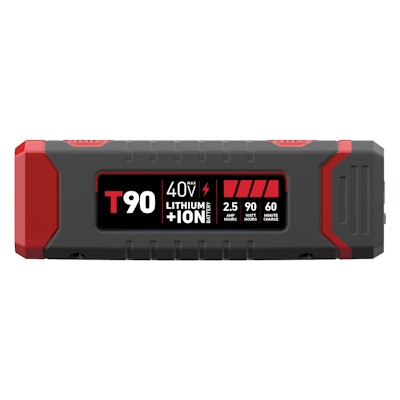The line also includes a quick charger with a tabletop or wall mount option and comes standard with the complete tools. The T90 (included) is a 40-Volt Max, 2.5 amp-hour and 90 watt-hour, lithium ion battery, and the T180 (optional upgrade) is a 40-Volt Max, 5.0 Amp-Hour and 180 watt-hour battery. Both batteries include an on-board power meter, and the T180 battery features an integrated LED flashlight, USB charging port for charging tablets, cell phones and other small devices, and a folding handle for simple transport. Batteries are interchangeable between products, allowing operators to easily switch from one task to another.