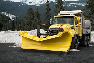 Freightliner 108SD. Typically used for a 4x2 city plow or spreader, this truck ideal for one-way front plows with short BBC (bumper to back of cab) and small bore engines, and can be spec’d with an engine that runs up to 330 hp.